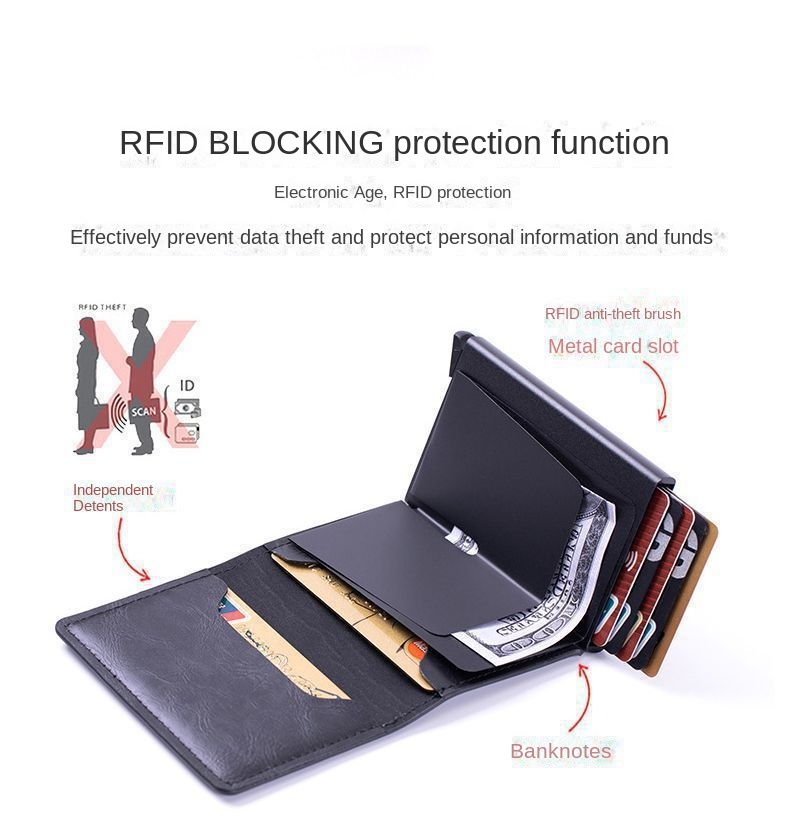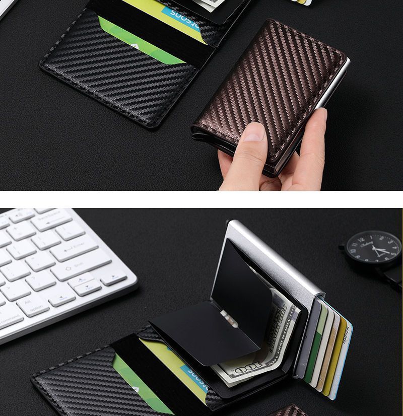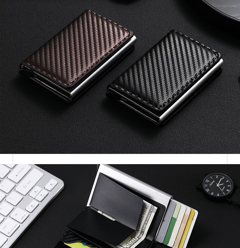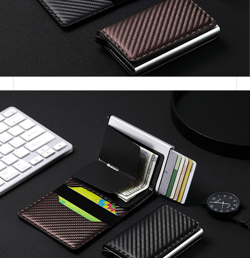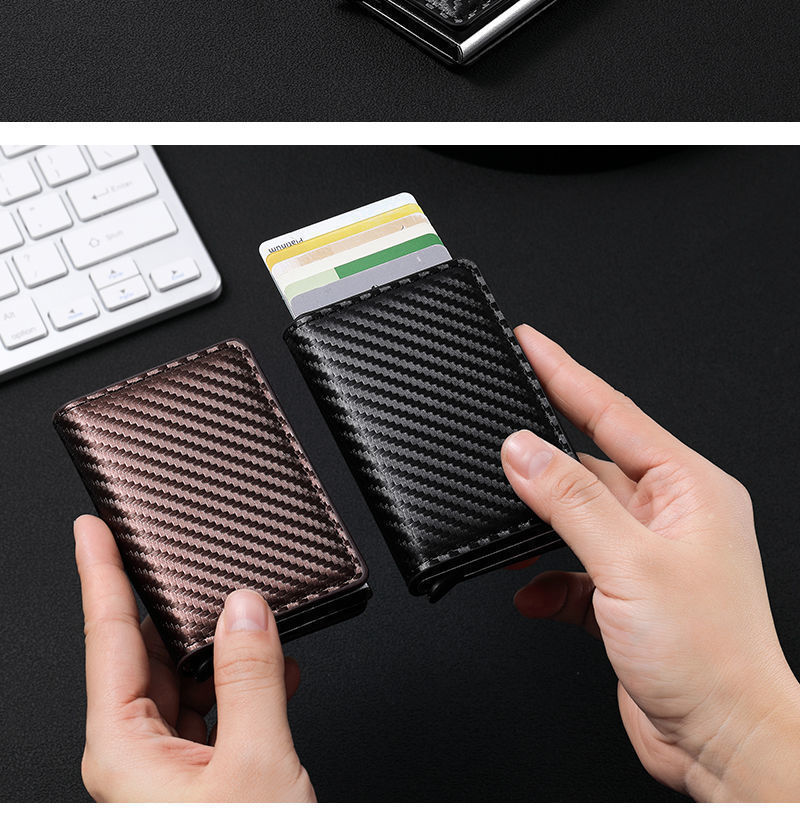 Cross-border Hot-selling Carbon Braze Dimension RFID Anti-theft Brush Automatic Pop-up Card Package Ultra-thin Credit Card Metal Card Package For Men